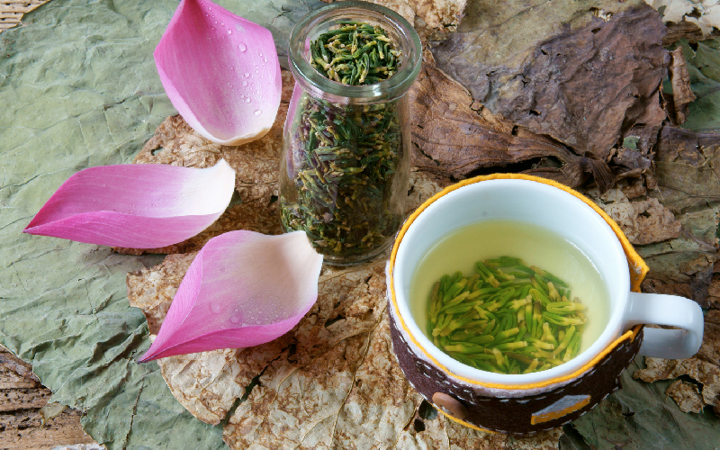Cách uống Lá sen khô kết hợp với trà xanh giảm mỡ máu