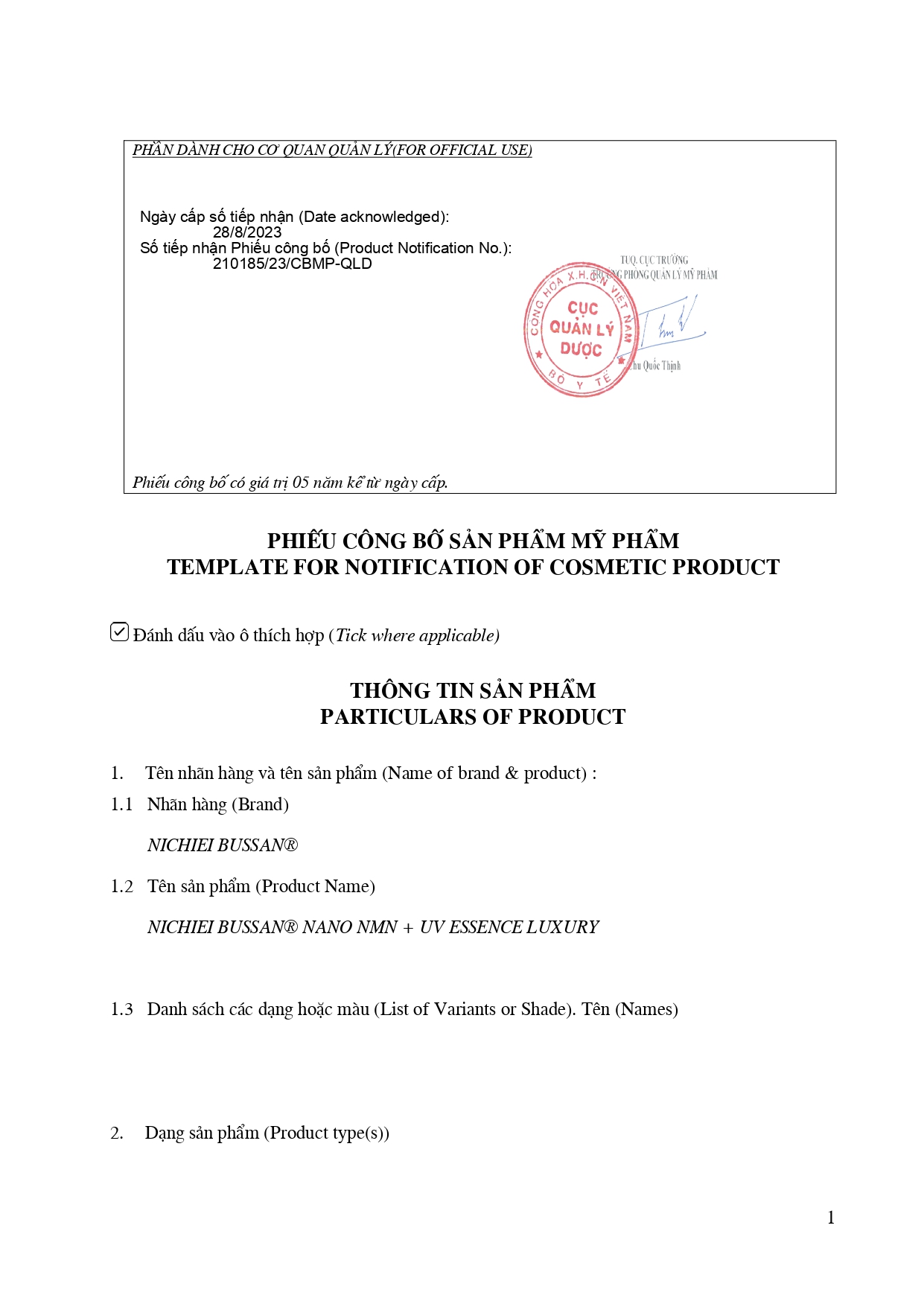 SẢN PHẨM CHỨNG NHẬN CÔNG BỐ: