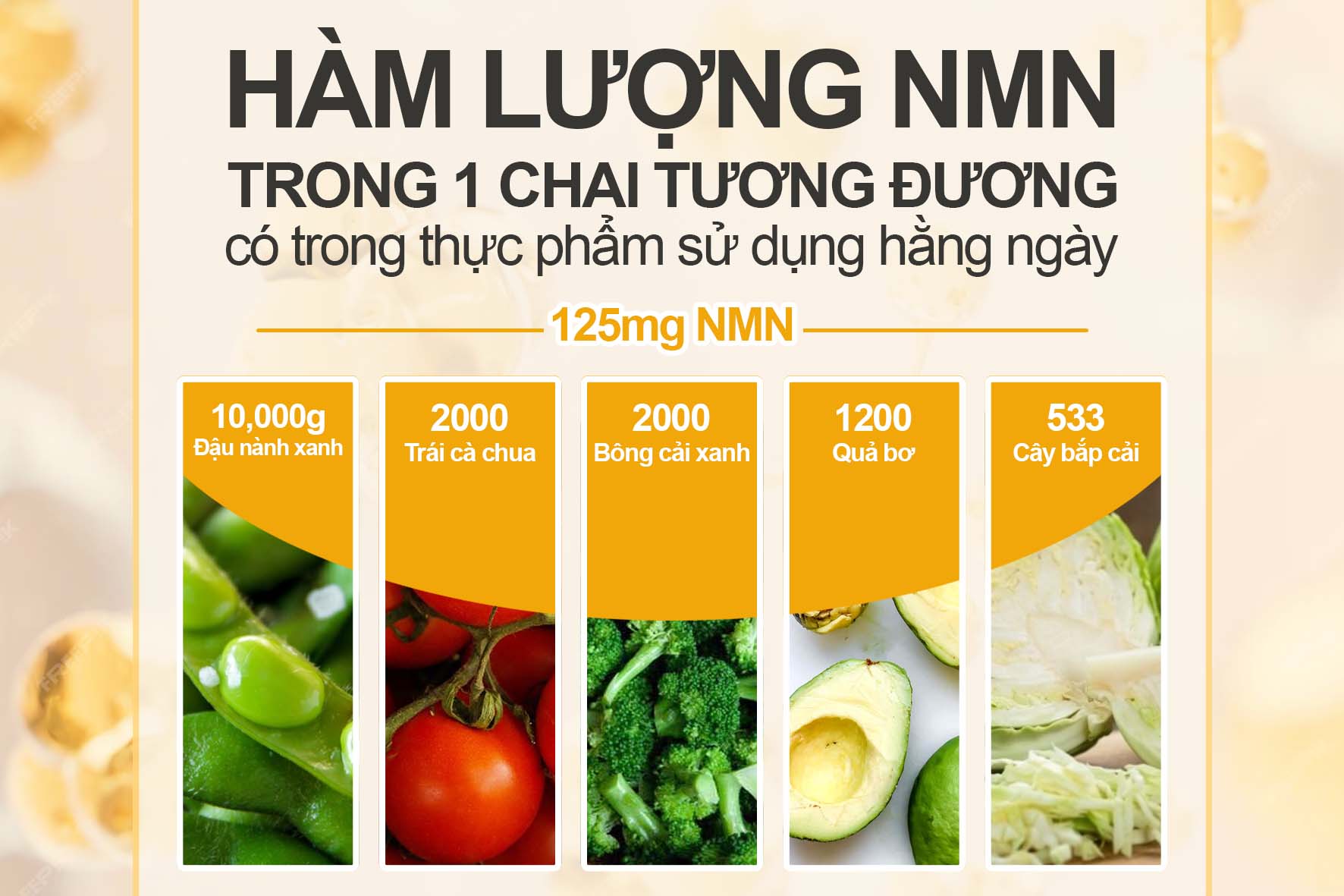 NMN có thể được tìm thấy tự nhiên trong một số loại thực phẩm như bông cải xanh, bơ, cà chua… nhưng hàm lượng rất nhỏ. Vì vậy, việc bổ sung NMN từ các nguồn khác như thực phẩm chức năng hay mỹ phẩm là cần thiết để duy trì mức NAD+ tối ưu.