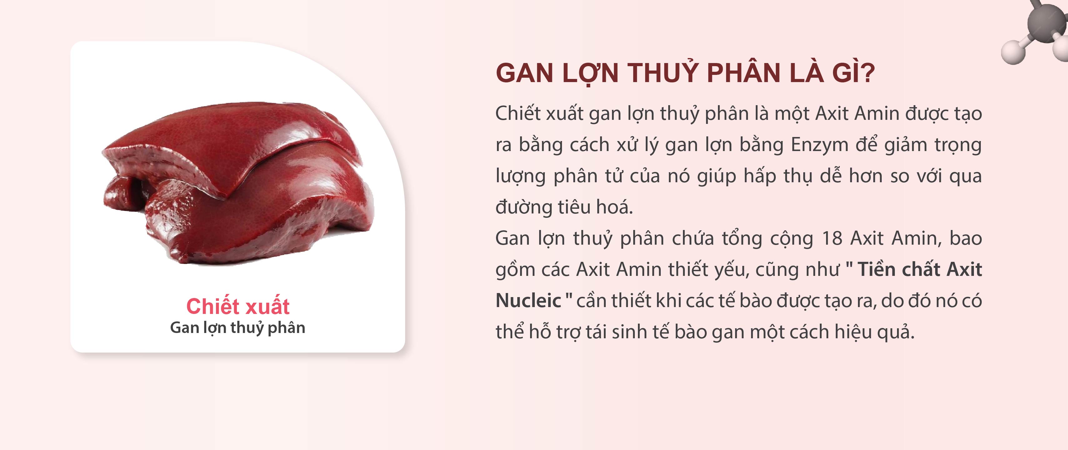 Gan lợn thuỷ phân đã được sử dụng trong y học cổ truyền từ lâu, với niềm tin rằng "gan bổ gan", vì thế ăn gan sẽ có lợi cho sức khỏe của gan. Chức năng trao đổi chất và giải độc của gan có thể bị suy giảm do căng thẳng hoặc lão hóa. Khi quá trình trao đổi chất của bạn bị ảnh hưởng, cơ thể sẽ không thể sản xuất và cung cấp đủ chất dinh dưỡng cần thiết, gây ảnh hưởng tiêu cực đến sức khỏe. Vì vậy, việc duy trì và bảo vệ chức năng gan, sẽ giúp cải thiện tình trạng sức khỏe tổng thể của bạn.