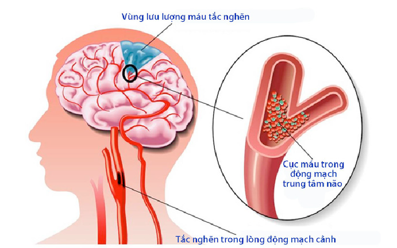 Tai biến mạch máu não do nhồi máu não thường xảy ra do cục máu đông, mạch máu bị nghẽn hoặc lấp. Những điều này có thể xảy ra vì: