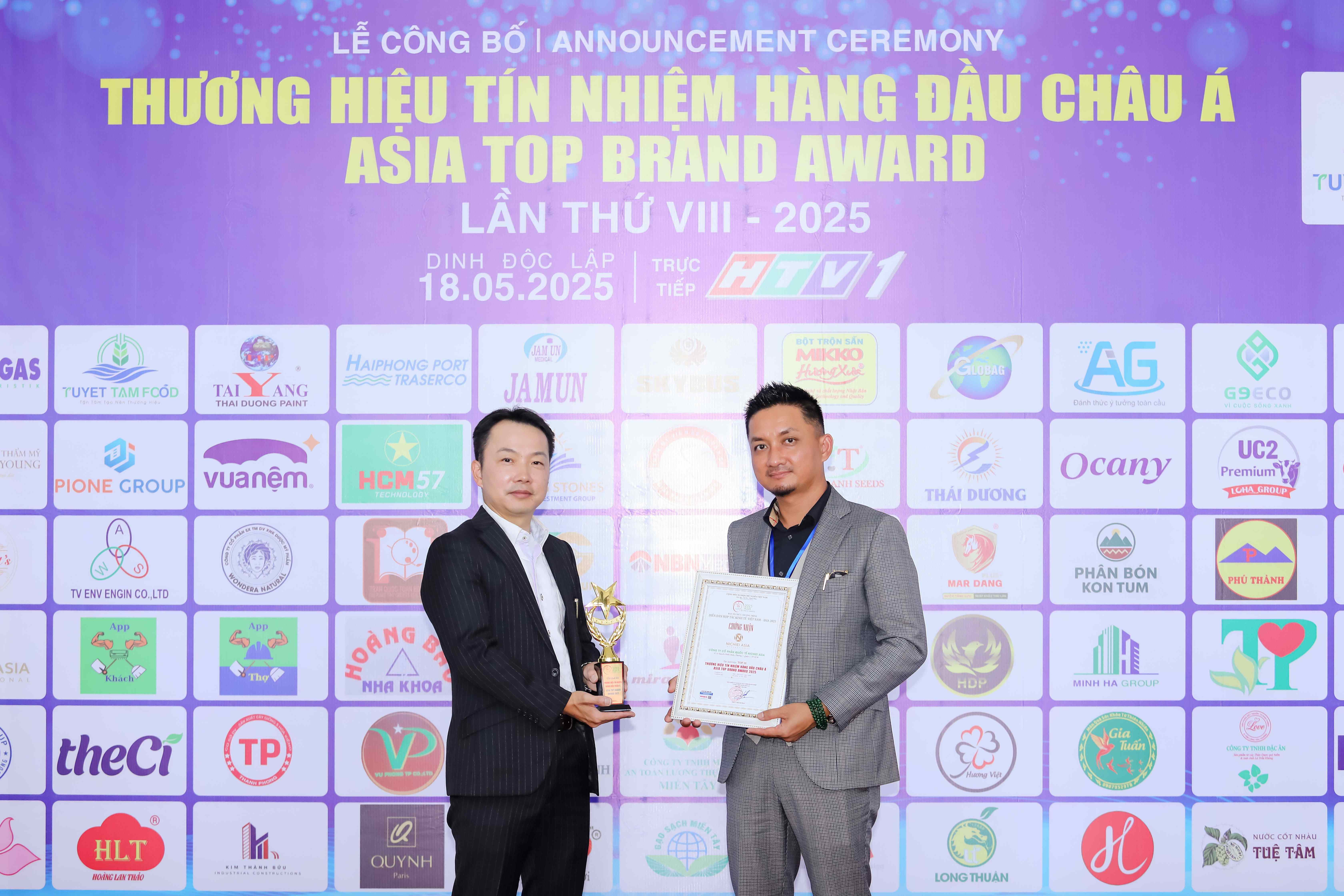 Cố vấn chuyên môn Nichiei Bussan (trái) và Giám đốc đối ngoại Nichiei Asia (phải) tự hào nhận giải thưởng Asia Top Brand Awards 2025