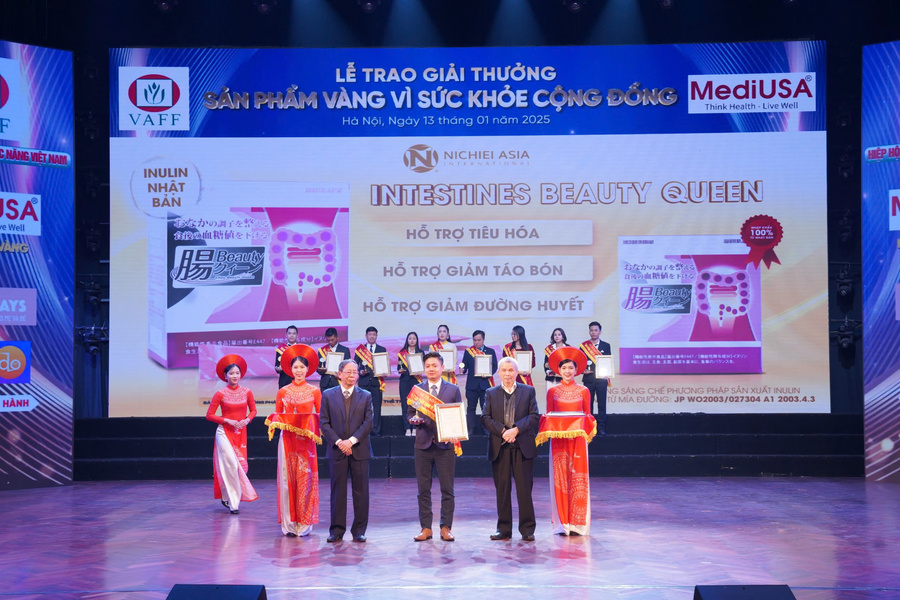 Sáng ngày 13/01/2025 tại Hà Nội, lễ trao giải "Sản phẩm vàng vì sức khỏe cộng đồng" năm 2025 do Hiệp hội Thực phẩm Chức năng Việt Nam (VAFF) tổ chức đã diễn ra với không khí trang nghiêm và long trọng. Vượt qua các tiêu chí đánh giá khắt khe, khoa học và khách quan, Công ty Cổ phần Quốc tế Nichiei tự hào khi sản phẩm Intestines Beauty Queen vinh dự được xướng tên nhận giải thưởng danh giá này.