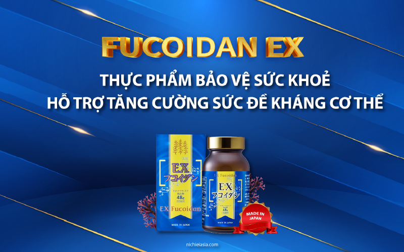 FUCOIDAN EX Được chiết xuất 100% từ tảo Mozuku Okinawa loại tảo có hàm lượng cao hơn so với tất cả các loại tảo nâu khác. Hàm lượng Fucoidan cao 48,000mg. Fucoidan hàm lượng cao giúp tăng sức đề kháng, bồi bổ cơ thể khỏe mạnh, hỗ trợ phòng chống nguy cơ mắc các bệnh ung thư.