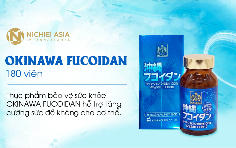 Okinawa Fucoidan là sản phẩm chứa thành phần có nguồn gốc tự nhiên, giúp ức chế sự hình thành phát triển của tế bào ung thư, tăng sức đề kháng, bồi bổ cơ thể khỏe mạnh hỗ trợ phòng chống và điều trị ung thư hiện nay. Hàm lượng Fucoidan cao 42,000mg. Được chiết xuất 100% từ tảo Mozuku Okinawa loại tảo có hàm lượng cao hơn so với tất cả các loại tảo nâu khác.