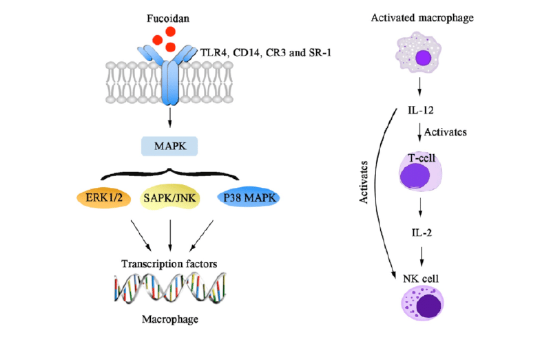 Nhiều nghiên cứu cho thấy, tác động kích hoạt tế bào NK của poly-saccharides trong Fucoidan (hoạt chất có trong rong nâu) có ý nghĩa với việc phòng ngừa, hỗ trợ điều trị ung thư. Fucoidan có thể duy trì sức mạnh cho tế bào NK tự nhiên, hỗ trợ điều trị u bướu nhờ góp phần kích thích tế bào ung thư chết nhanh hơn, hỗ trợ ngăn ngừa hình thành mạch máu mới nuôi khối u bướu, ngăn chặn sự lây lan.
